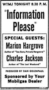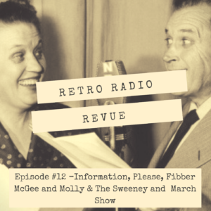 This is Episode 12 of Retro Radio Revue. This week we are featuring programs that had an original air date between September 9 through September 15. We’ll hear episodes from Information, Please, Fibber McGee and Molly and The Sweeney and March Show.