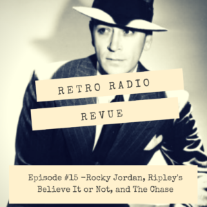 This is Episode 15 of Retro Radio Revue. This week we are featuring programs that had an original air date between September 30 through October 6. We’ll hear episodes from Rocky Jordan, Ripley’s Believe It or Not, and The Chase.