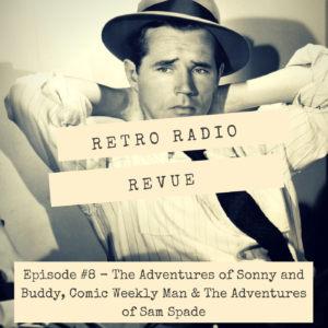 This is Episode 8 of Retro Radio Revue. This week we are featuring programs that had an original air date between August 12 through August 18. We’ll hear episodes from The Adventures of Sonny and Buddy, The Comic Weekly Man and The Adventures of Sam Spade.