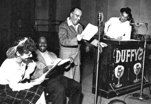 Starring: Ed Gardner, Eddie Green, Charlie Cantor, Florence Halop (as “Miss Duffy”), John Morris (producer, director), Matty Malneck and His Orchestra, Ken Christy, Alan Reed.